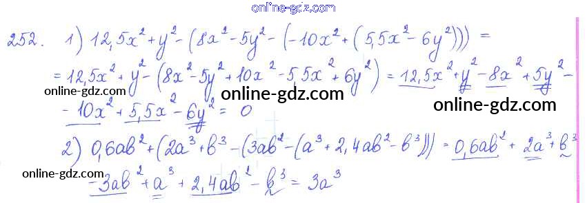 Готовые домашние задания по Алгебре за 7 класс Учебник Алимов, Колягин 2014 - §15. Сложение и вычитание многочленов Глава 3. Одночлены и многочлены 252