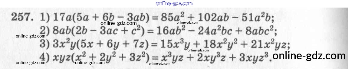 Готовые домашние задания по Алгебре за 7 класс Учебник Алимов, Колягин 2014 - §16. Умножение многочлена на одночлен Глава 3. Одночлены и многочлены 257