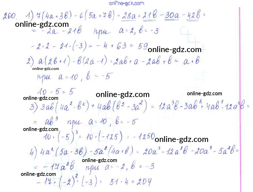 Готовые домашние задания по Алгебре за 7 класс Учебник Алимов, Колягин 2014 - §16. Умножение многочлена на одночлен Глава 3. Одночлены и многочлены 260