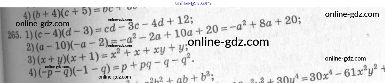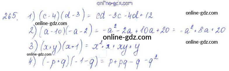 Готовые домашние задания по Алгебре за 7 класс Учебник Алимов, Колягин 2014 - §17. Умножение многочлена на многочлен Глава 3. Одночлены и многочлены 265