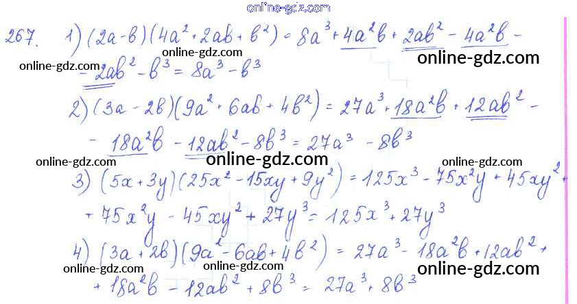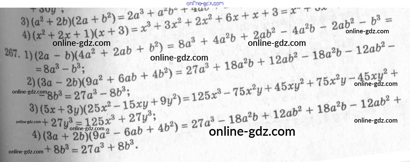 Готовые домашние задания по Алгебре за 7 класс Учебник Алимов, Колягин 2014 - §17. Умножение многочлена на многочлен Глава 3. Одночлены и многочлены 267