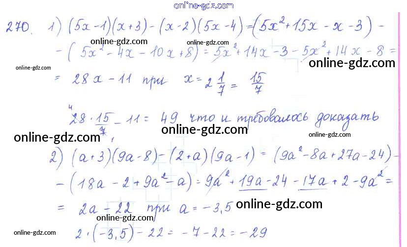 Готовые домашние задания по Алгебре за 7 класс Учебник Алимов, Колягин 2014 - §17. Умножение многочлена на многочлен Глава 3. Одночлены и многочлены 270