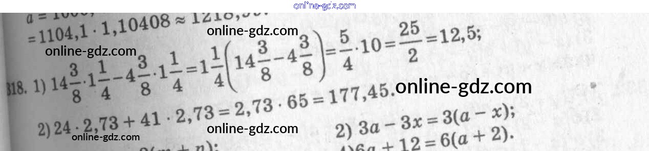 Готовые домашние задания по Алгебре за 7 класс Учебник Алимов, Колягин 2014 - §19. Вынесение общего множителя за скобки Глава 4. Разложение многочленов на множители 318