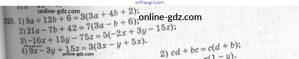 Готовые домашние задания по Алгебре за 7 класс Учебник Алимов, Колягин 2014 - §19. Вынесение общего множителя за скобки Глава 4. Разложение многочленов на множители 320