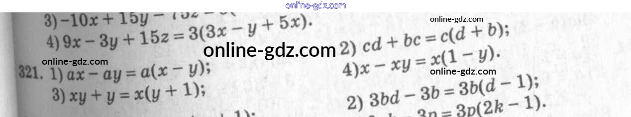 Готовые домашние задания по Алгебре за 7 класс Учебник Алимов, Колягин 2014 - §19. Вынесение общего множителя за скобки Глава 4. Разложение многочленов на множители 321