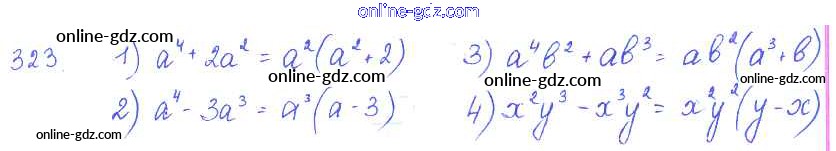 Готовые домашние задания по Алгебре за 7 класс Учебник Алимов, Колягин 2014 - §19. Вынесение общего множителя за скобки Глава 4. Разложение многочленов на множители 323
