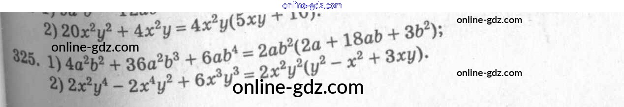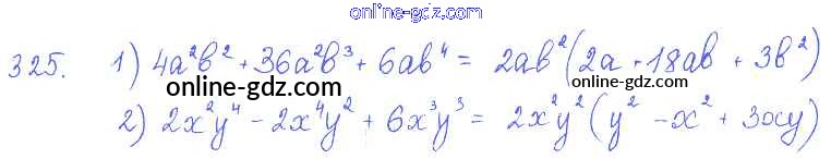 Готовые домашние задания по Алгебре за 7 класс Учебник Алимов, Колягин 2014 - §19. Вынесение общего множителя за скобки Глава 4. Разложение многочленов на множители 325