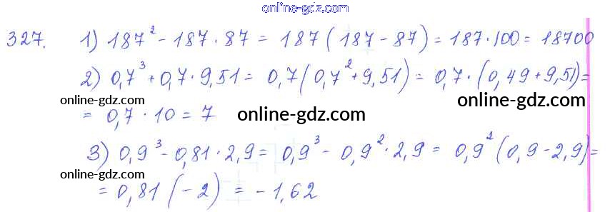 Готовые домашние задания по Алгебре за 7 класс Учебник Алимов, Колягин 2014 - §19. Вынесение общего множителя за скобки Глава 4. Разложение многочленов на множители 327