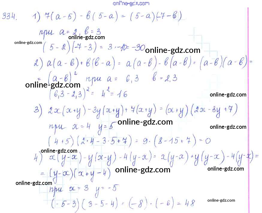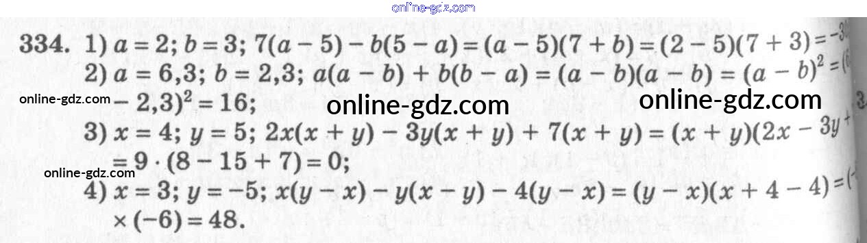 Готовые домашние задания по Алгебре за 7 класс Учебник Алимов, Колягин 2014 - §19. Вынесение общего множителя за скобки Глава 4. Разложение многочленов на множители 334