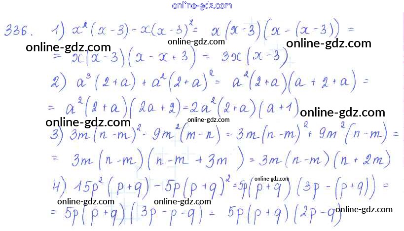 Готовые домашние задания по Алгебре за 7 класс Учебник Алимов, Колягин 2014 - §19. Вынесение общего множителя за скобки Глава 4. Разложение многочленов на множители 336