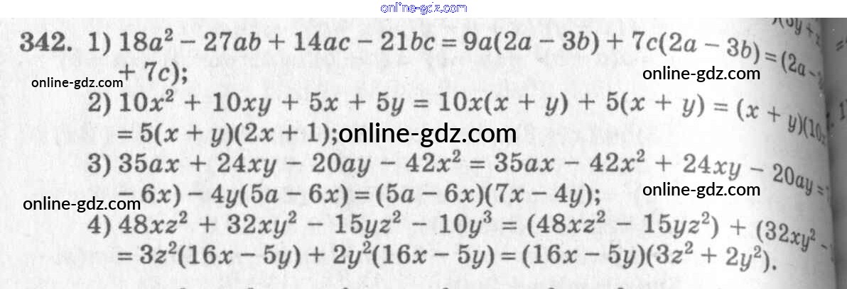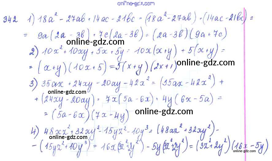 Готовые домашние задания по Алгебре за 7 класс Учебник Алимов, Колягин 2014 - §20. Способ группировки Глава 4. Разложение многочленов на множители 342
