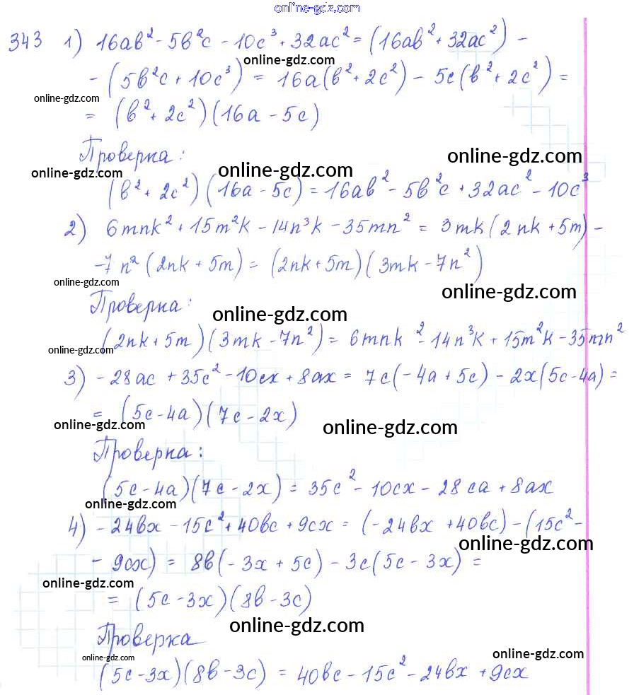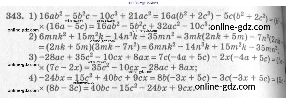 Готовые домашние задания по Алгебре за 7 класс Учебник Алимов, Колягин 2014 - §20. Способ группировки Глава 4. Разложение многочленов на множители 343