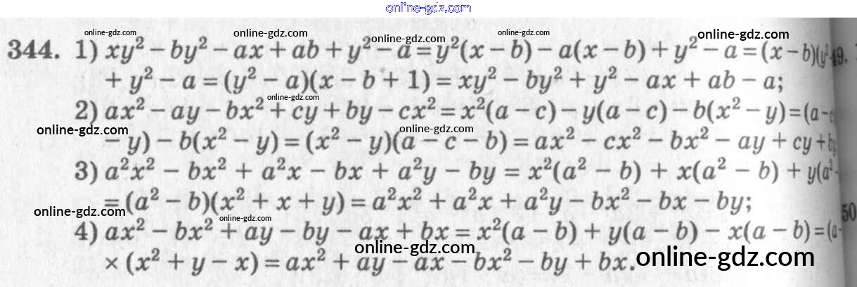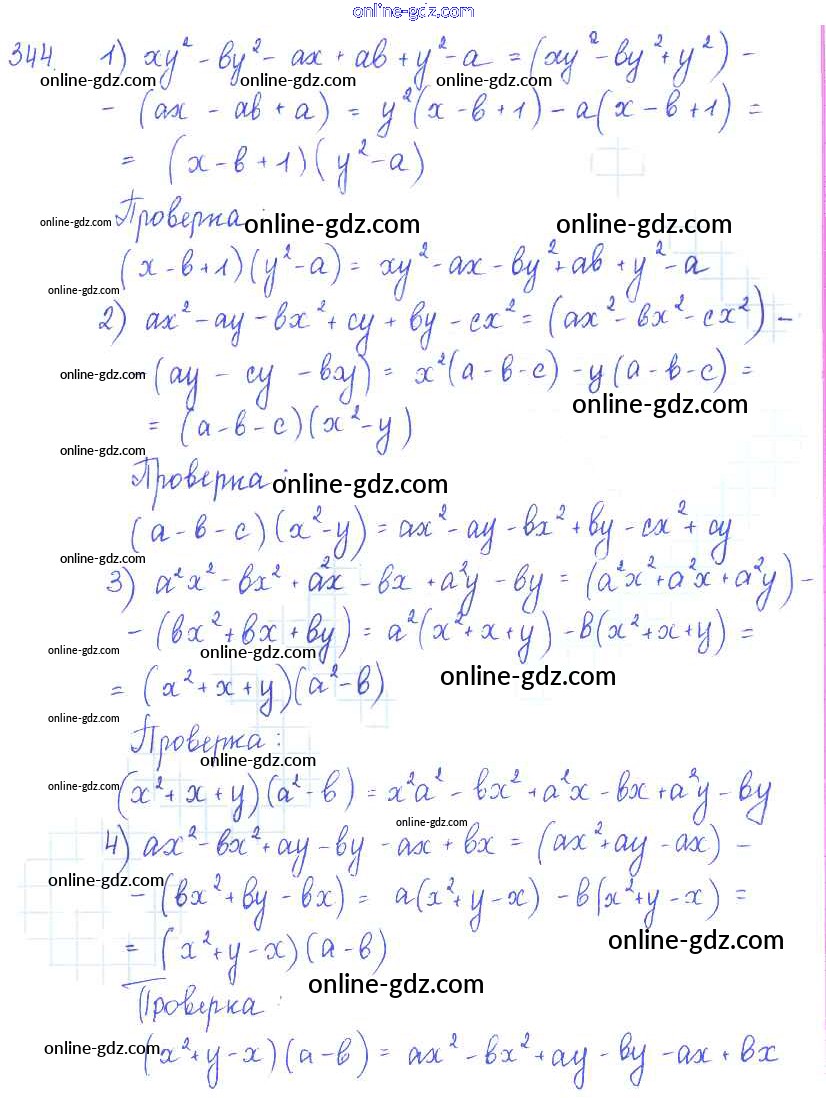 Готовые домашние задания по Алгебре за 7 класс Учебник Алимов, Колягин 2014 - §20. Способ группировки Глава 4. Разложение многочленов на множители 344