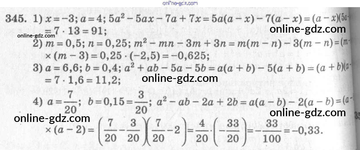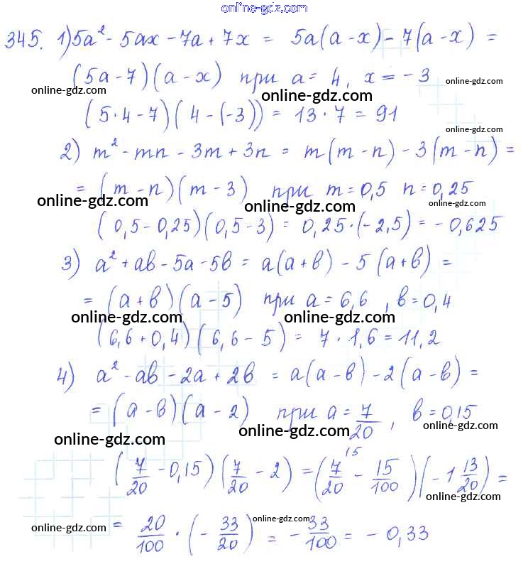 Готовые домашние задания по Алгебре за 7 класс Учебник Алимов, Колягин 2014 - §20. Способ группировки Глава 4. Разложение многочленов на множители 345