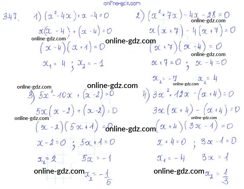 Готовые домашние задания по Алгебре за 7 класс Учебник Алимов, Колягин 2014 - §20. Способ группировки Глава 4. Разложение многочленов на множители 347