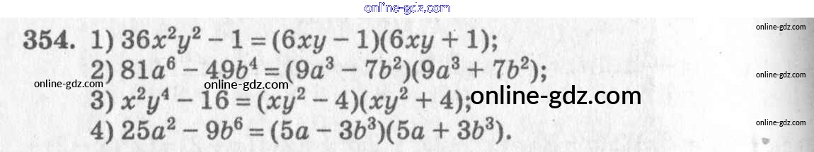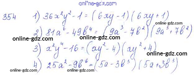 Готовые домашние задания по Алгебре за 7 класс Учебник Алимов, Колягин 2014 - §21. Формула разности квадратов Глава 4. Разложение многочленов на множители 354