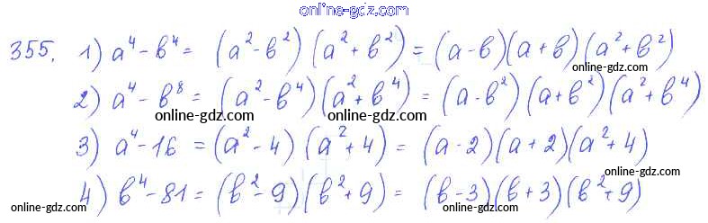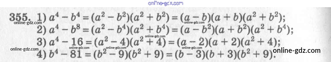 Готовые домашние задания по Алгебре за 7 класс Учебник Алимов, Колягин 2014 - §21. Формула разности квадратов Глава 4. Разложение многочленов на множители 355