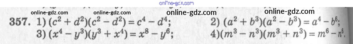 Готовые домашние задания по Алгебре за 7 класс Учебник Алимов, Колягин 2014 - §21. Формула разности квадратов Глава 4. Разложение многочленов на множители 357