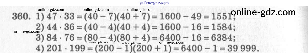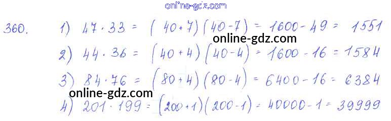 Готовые домашние задания по Алгебре за 7 класс Учебник Алимов, Колягин 2014 - §21. Формула разности квадратов Глава 4. Разложение многочленов на множители 360