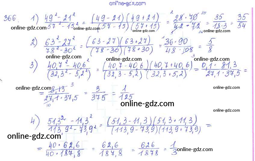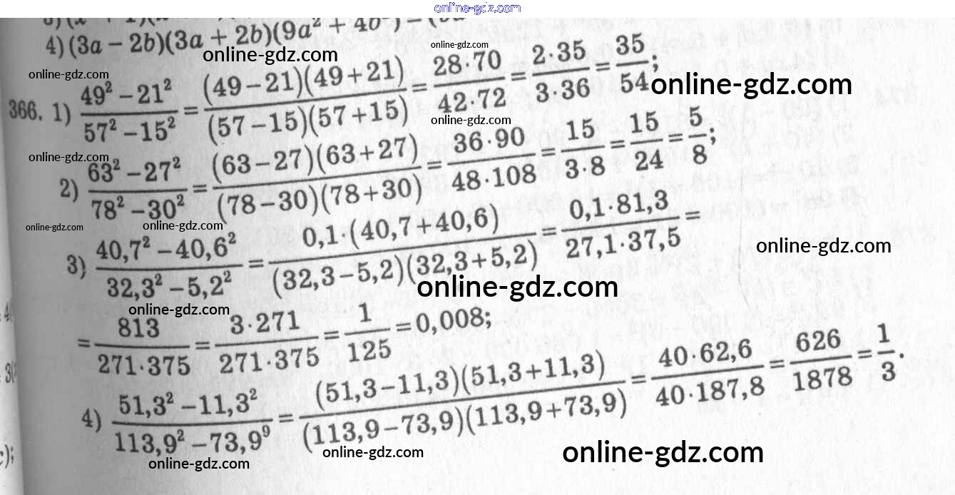 Готовые домашние задания по Алгебре за 7 класс Учебник Алимов, Колягин 2014 - §21. Формула разности квадратов Глава 4. Разложение многочленов на множители 366