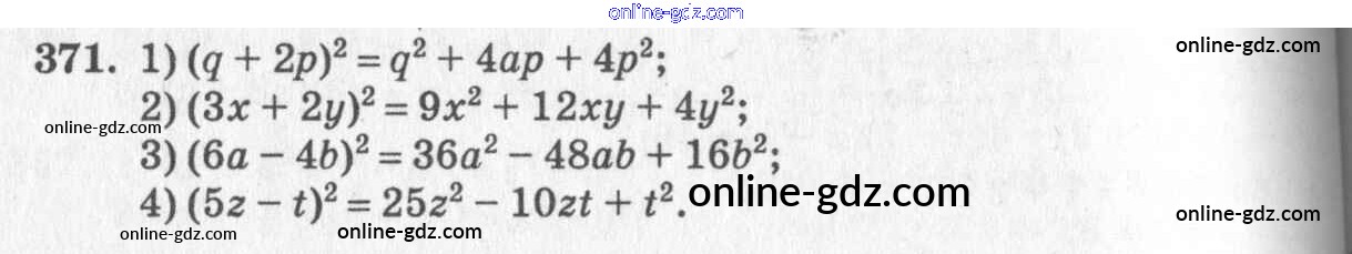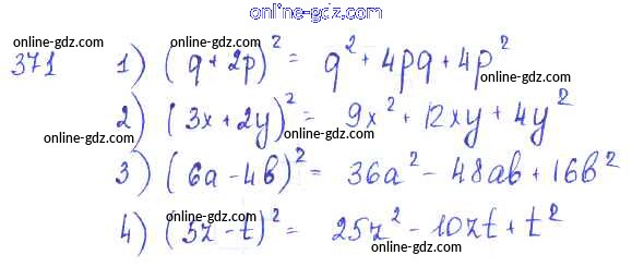 Готовые домашние задания по Алгебре за 7 класс Учебник Алимов, Колягин 2014 - §22. Квадрат суммы. Квадрат разности Глава 4. Разложение многочленов на множители 371