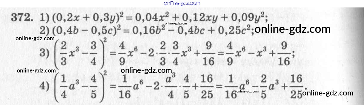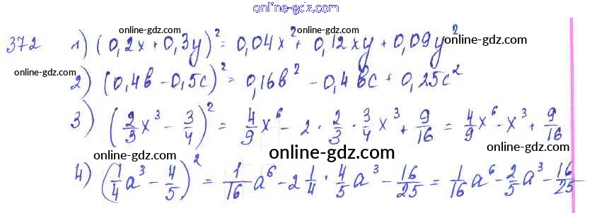 Готовые домашние задания по Алгебре за 7 класс Учебник Алимов, Колягин 2014 - §22. Квадрат суммы. Квадрат разности Глава 4. Разложение многочленов на множители 372