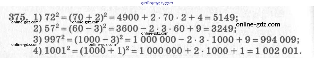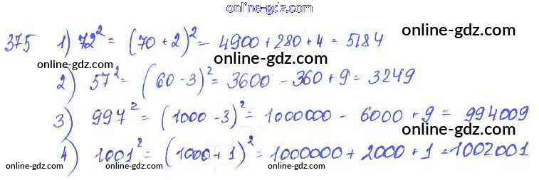 Готовые домашние задания по Алгебре за 7 класс Учебник Алимов, Колягин 2014 - §22. Квадрат суммы. Квадрат разности Глава 4. Разложение многочленов на множители 375