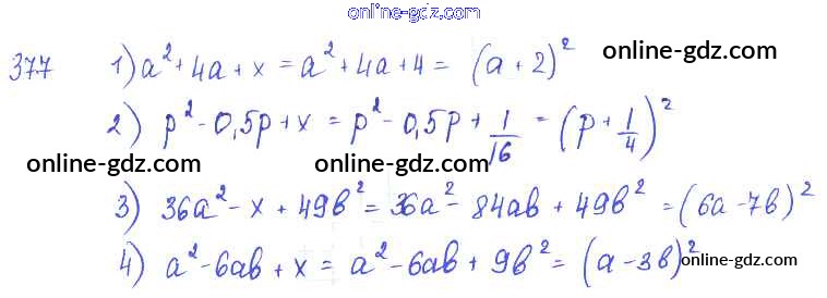 Готовые домашние задания по Алгебре за 7 класс Учебник Алимов, Колягин 2014 - §22. Квадрат суммы. Квадрат разности Глава 4. Разложение многочленов на множители 377
