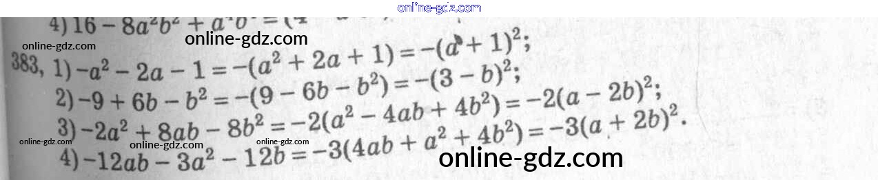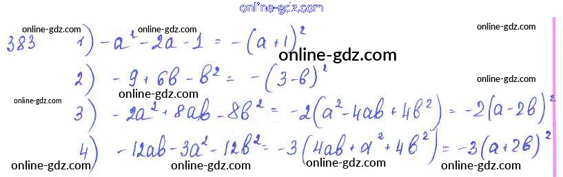 Готовые домашние задания по Алгебре за 7 класс Учебник Алимов, Колягин 2014 - §22. Квадрат суммы. Квадрат разности Глава 4. Разложение многочленов на множители 383