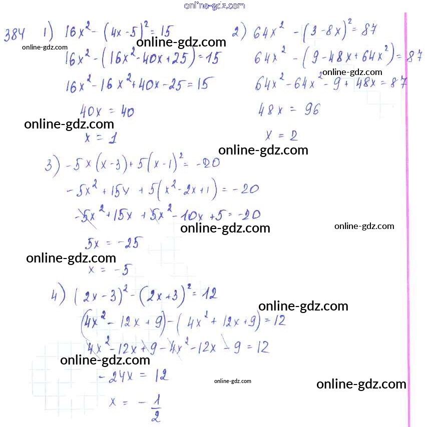Готовые домашние задания по Алгебре за 7 класс Учебник Алимов, Колягин 2014 - §22. Квадрат суммы. Квадрат разности Глава 4. Разложение многочленов на множители 384