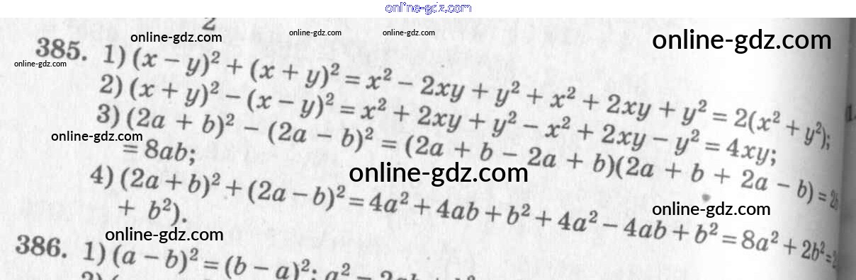Готовые домашние задания по Алгебре за 7 класс Учебник Алимов, Колягин 2014 - §22. Квадрат суммы. Квадрат разности Глава 4. Разложение многочленов на множители 385