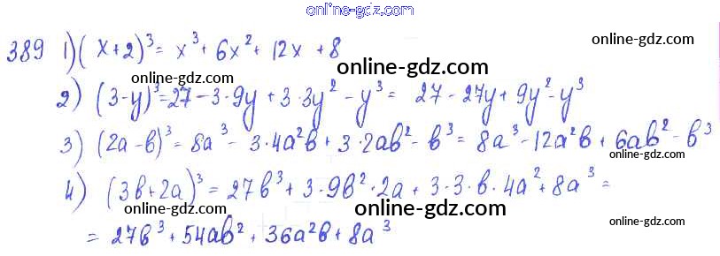 Готовые домашние задания по Алгебре за 7 класс Учебник Алимов, Колягин 2014 - §22. Квадрат суммы. Квадрат разности Глава 4. Разложение многочленов на множители 389