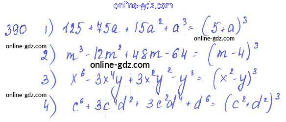 Готовые домашние задания по Алгебре за 7 класс Учебник Алимов, Колягин 2014 - §22. Квадрат суммы. Квадрат разности Глава 4. Разложение многочленов на множители 390