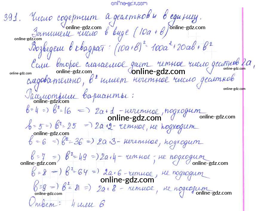 Готовые домашние задания по Алгебре за 7 класс Учебник Алимов, Колягин 2014 - §22. Квадрат суммы. Квадрат разности Глава 4. Разложение многочленов на множители 391