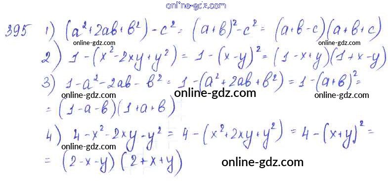 Готовые домашние задания по Алгебре за 7 класс Учебник Алимов, Колягин 2014 - §23. Применение нескольких способов разложения многочлена на множители Глава 4. Разложение многочленов на множители 395