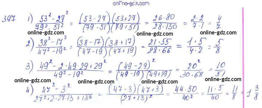 Готовые домашние задания по Алгебре за 7 класс Учебник Алимов, Колягин 2014 - §23. Применение нескольких способов разложения многочлена на множители Глава 4. Разложение многочленов на множители 397