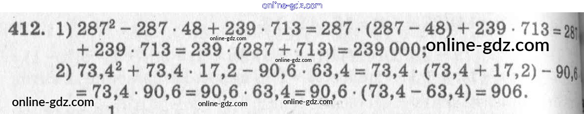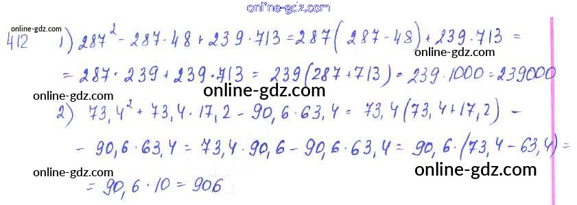 Готовые домашние задания по Алгебре за 7 класс Учебник Алимов, Колягин 2014 - Упражнения к главе 4 Глава 4. Разложение многочленов на множители 412