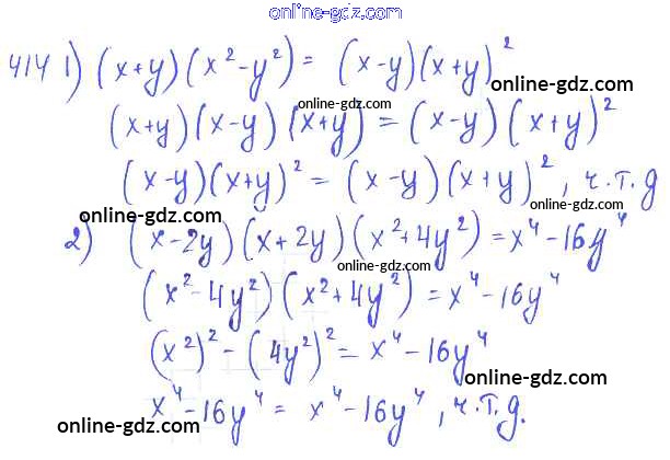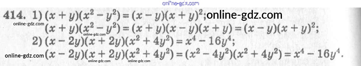 Готовые домашние задания по Алгебре за 7 класс Учебник Алимов, Колягин 2014 - Упражнения к главе 4 Глава 4. Разложение многочленов на множители 414