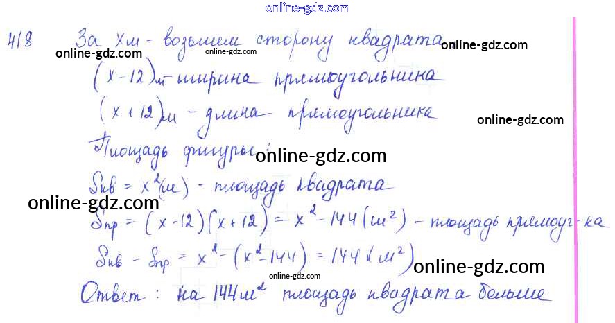 Готовые домашние задания по Алгебре за 7 класс Учебник Алимов, Колягин 2014 - Упражнения к главе 4 Глава 4. Разложение многочленов на множители 418