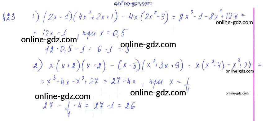 Готовые домашние задания по Алгебре за 7 класс Учебник Алимов, Колягин 2014 - Упражнения к главе 4 Глава 4. Разложение многочленов на множители 423