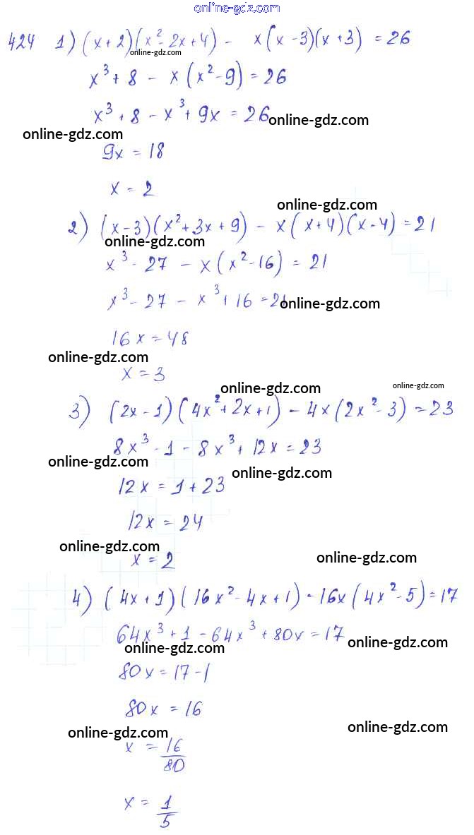 Готовые домашние задания по Алгебре за 7 класс Учебник Алимов, Колягин 2014 - Упражнения к главе 4 Глава 4. Разложение многочленов на множители 424
