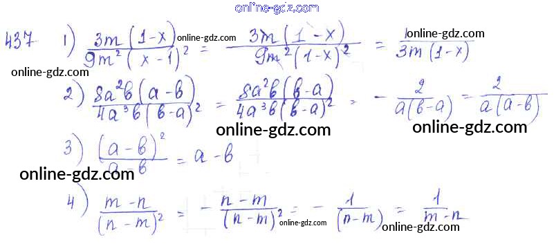Готовые домашние задания по Алгебре за 7 класс Учебник Алимов, Колягин 2014 - §24. Алгебраическая дробь. Сокращение дробей Глава 5. Алгебраические дроби 437