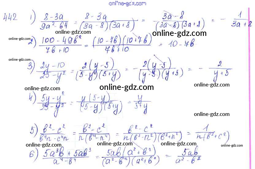 Готовые домашние задания по Алгебре за 7 класс Учебник Алимов, Колягин 2014 - §24. Алгебраическая дробь. Сокращение дробей Глава 5. Алгебраические дроби 442