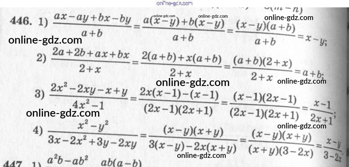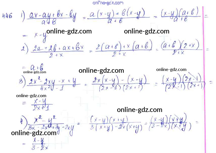 Готовые домашние задания по Алгебре за 7 класс Учебник Алимов, Колягин 2014 - §24. Алгебраическая дробь. Сокращение дробей Глава 5. Алгебраические дроби 446