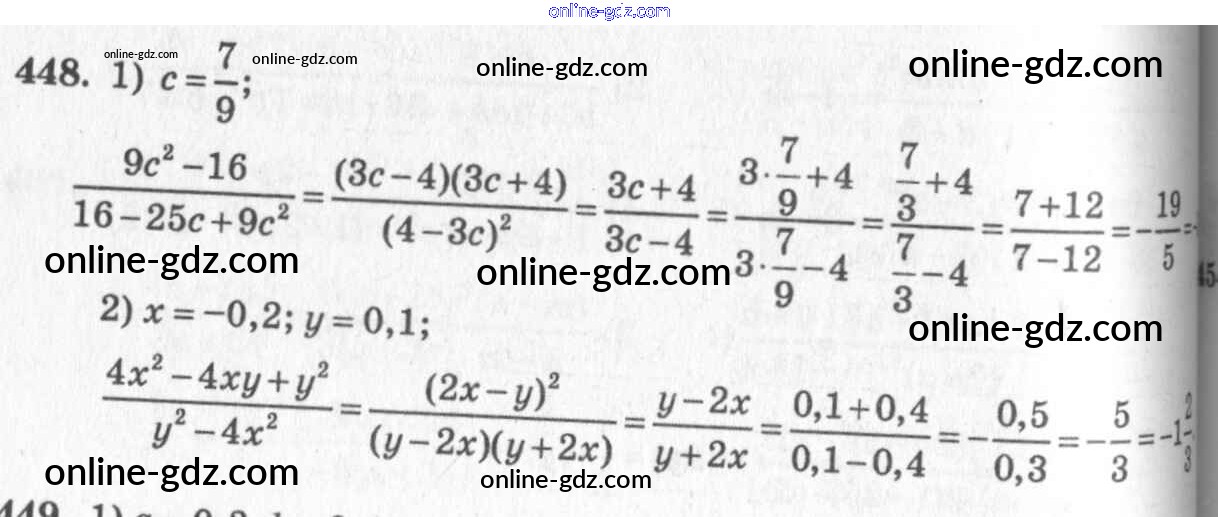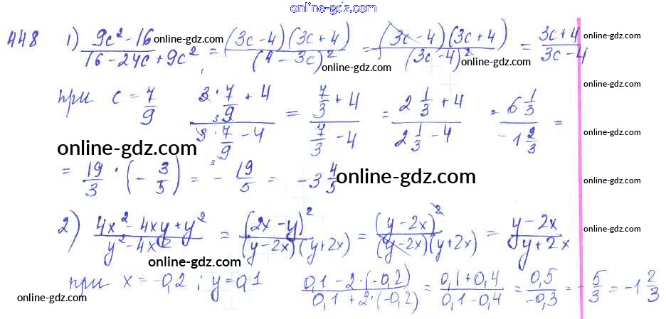 Готовые домашние задания по Алгебре за 7 класс Учебник Алимов, Колягин 2014 - §24. Алгебраическая дробь. Сокращение дробей Глава 5. Алгебраические дроби 448