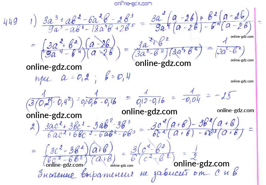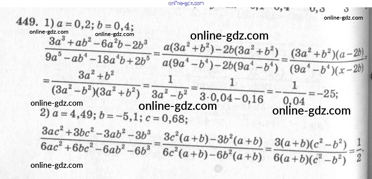 Готовые домашние задания по Алгебре за 7 класс Учебник Алимов, Колягин 2014 - §24. Алгебраическая дробь. Сокращение дробей Глава 5. Алгебраические дроби 449