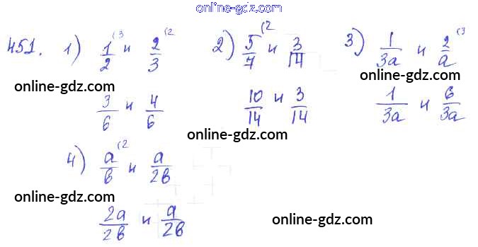 Готовые домашние задания по Алгебре за 7 класс Учебник Алимов, Колягин 2014 - §25. Приведение дробей к общему знаменателю Глава 5. Алгебраические дроби 451