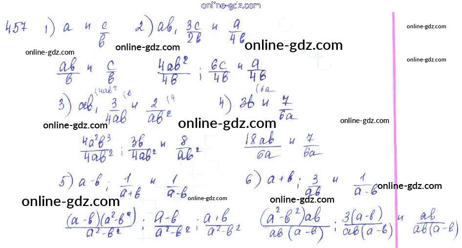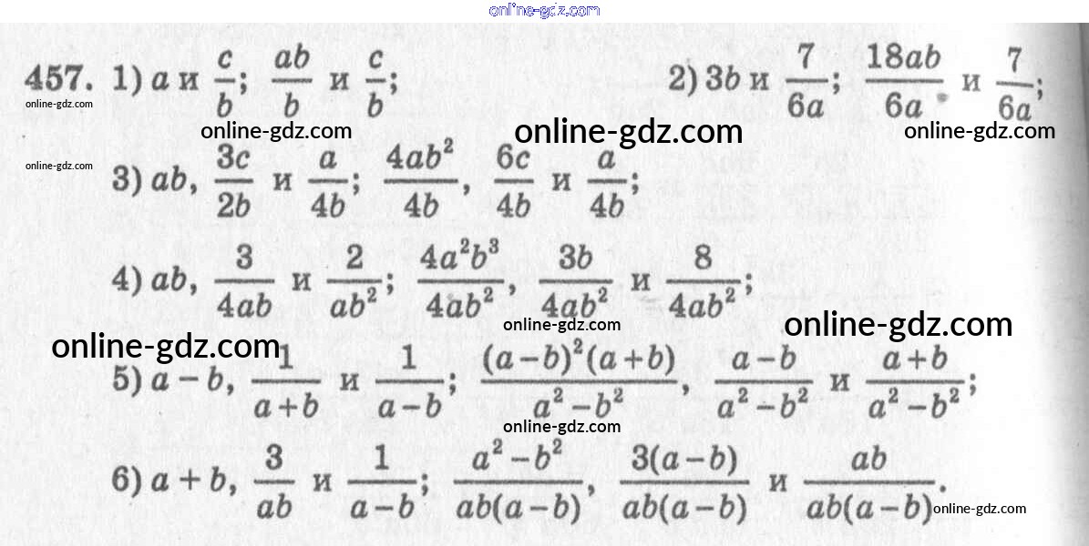 Готовые домашние задания по Алгебре за 7 класс Учебник Алимов, Колягин 2014 - §25. Приведение дробей к общему знаменателю Глава 5. Алгебраические дроби 457