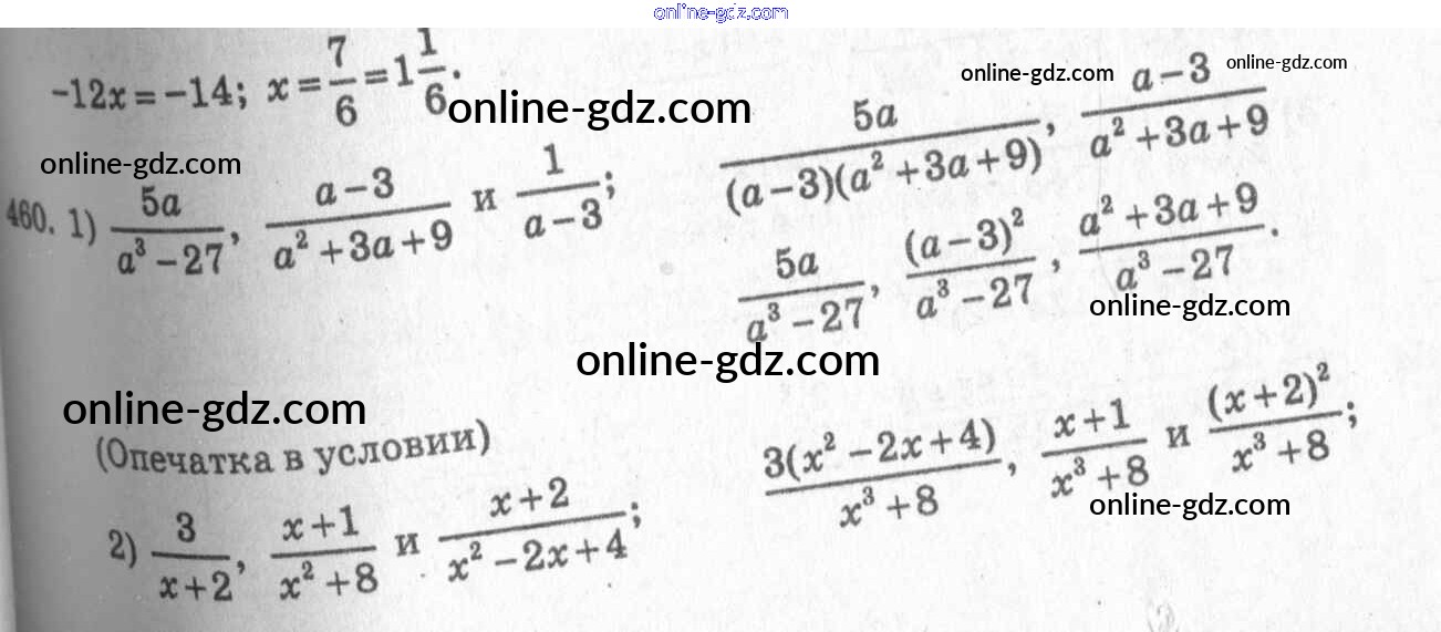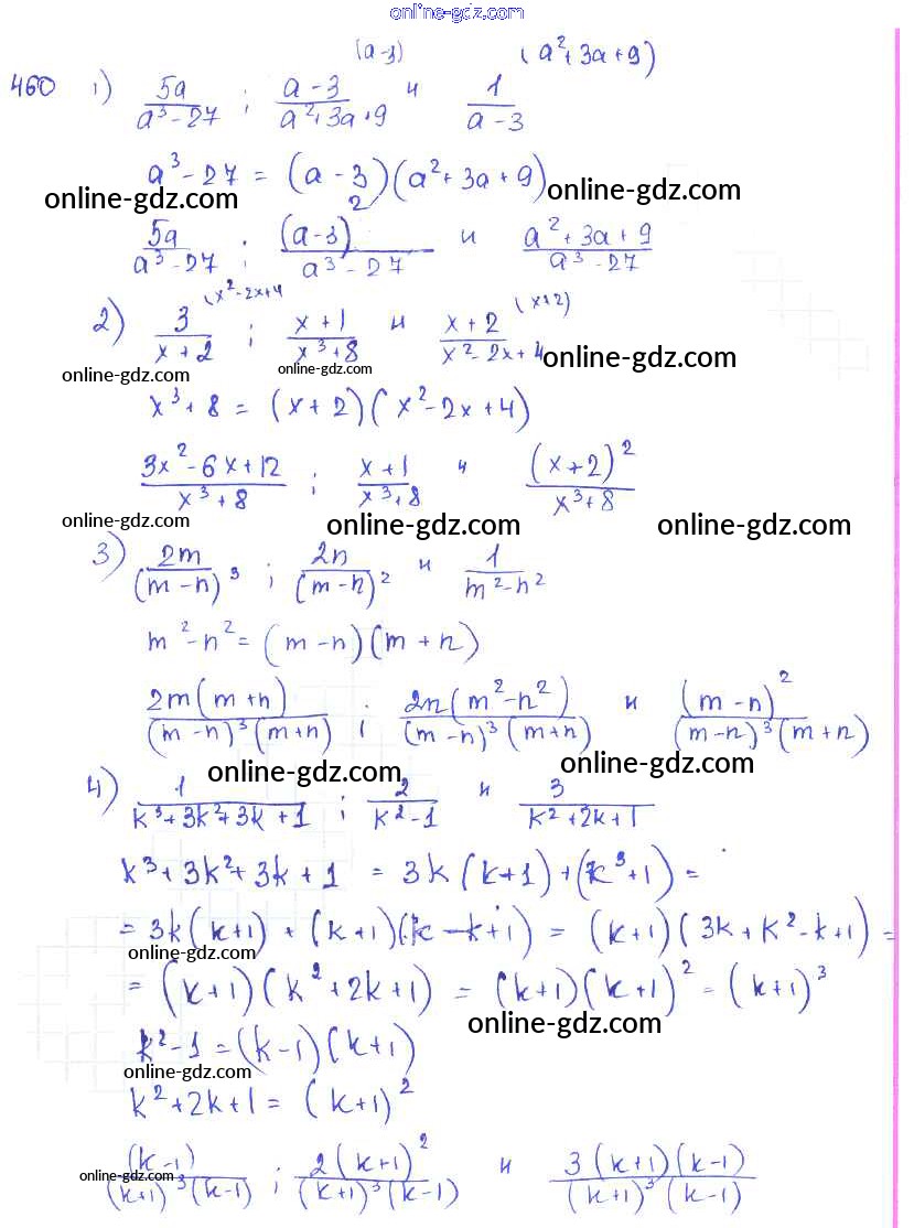 Готовые домашние задания по Алгебре за 7 класс Учебник Алимов, Колягин 2014 - §25. Приведение дробей к общему знаменателю Глава 5. Алгебраические дроби 460