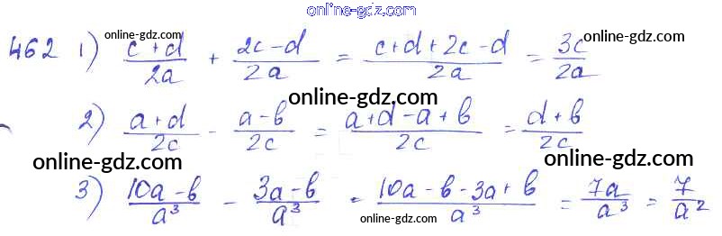 Готовые домашние задания по Алгебре за 7 класс Учебник Алимов, Колягин 2014 - §26. Сложение и вычитание алгебраических дробей Глава 5. Алгебраические дроби 462